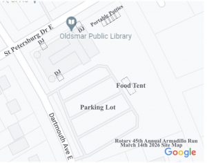 The race start is located In front of Oldsmar Public Library 400 St. Petersburg Dr. E. Oldsmar, FL.34677. The races run through the city and you can view many scenic places as you participate.